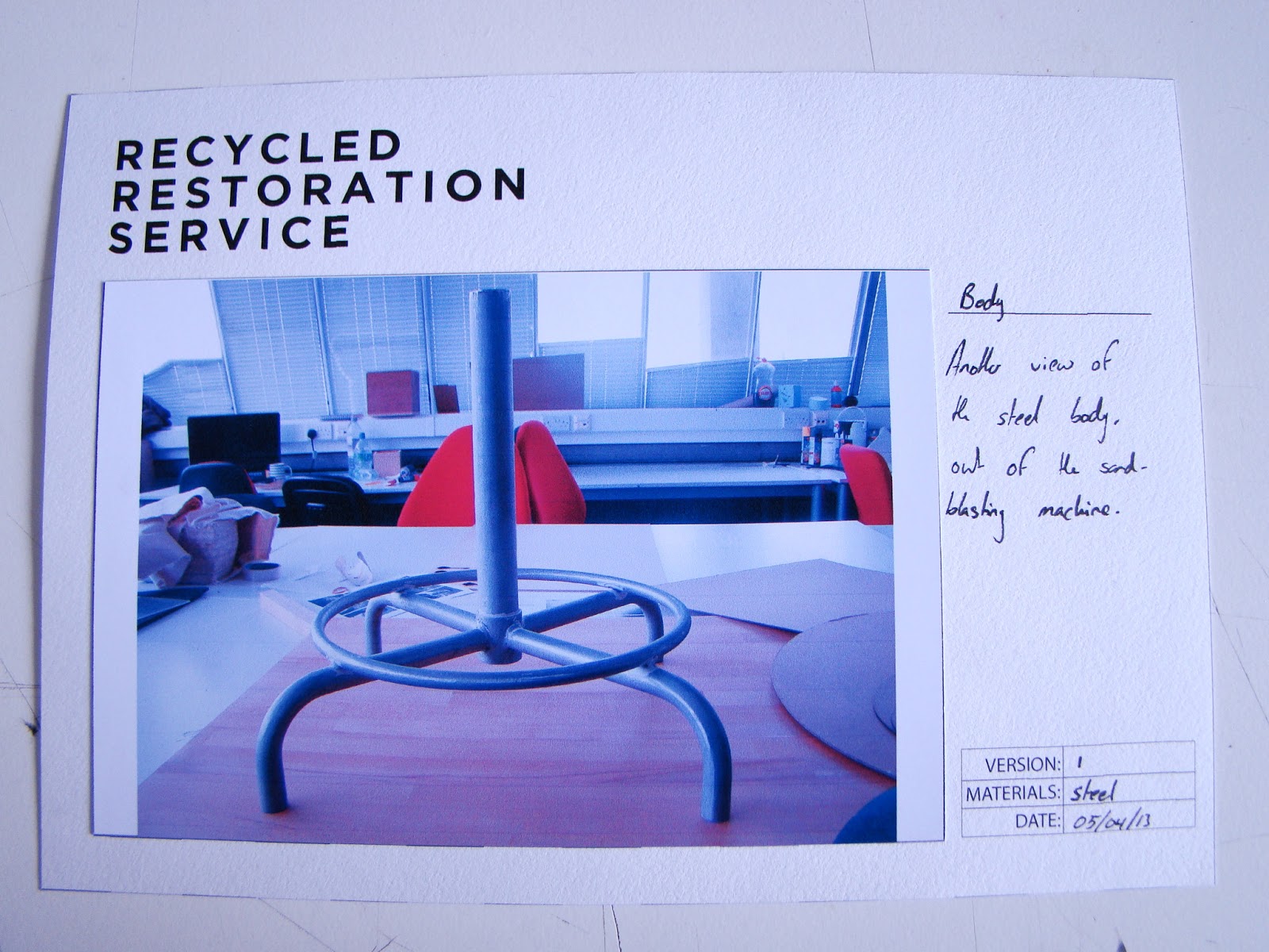 As designed the booklets that are going to be sent out during the manufacturing process have been started and are then getting sent out. The first one is the frame or body of the item which is now being designed as a table. The booklet is shown below: